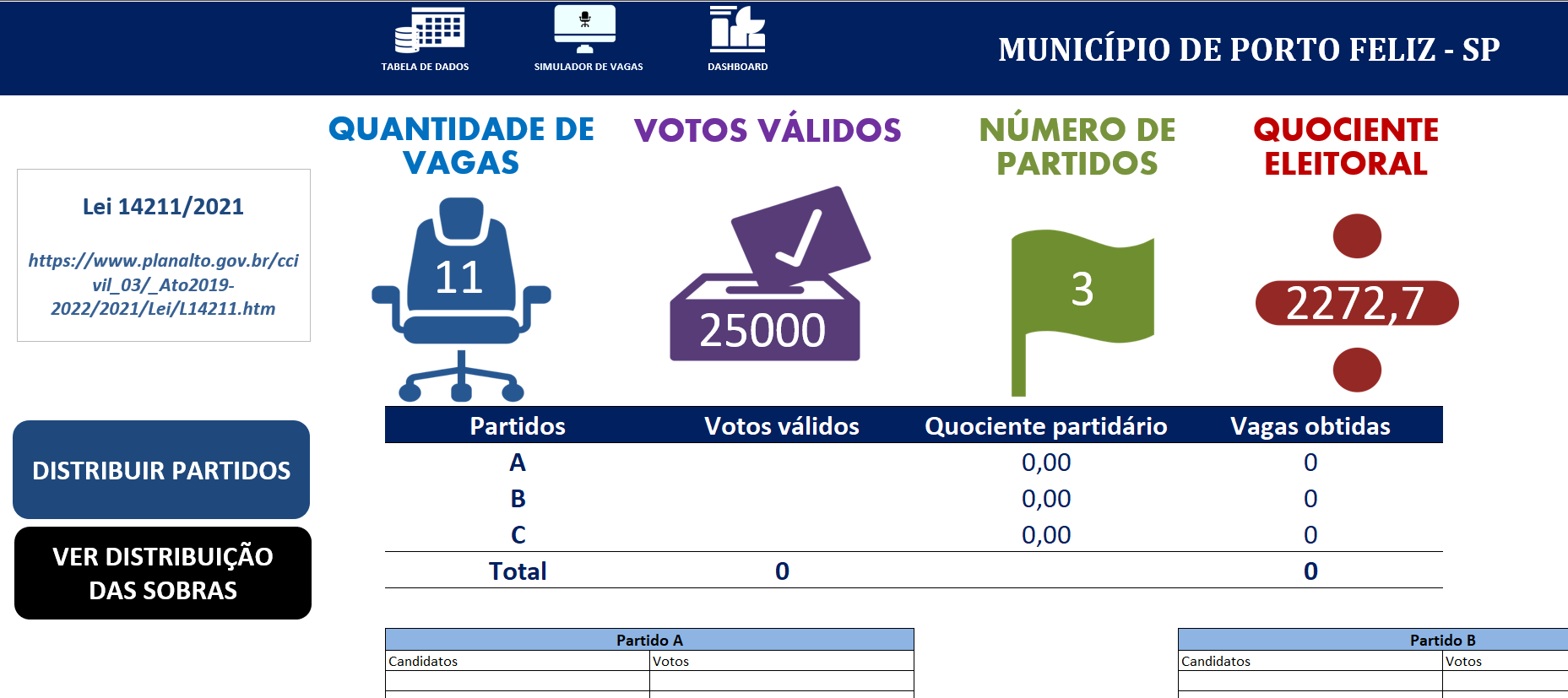 Códigos VBA para cálculos de cadeiras políticas, menus customizados e dashboard