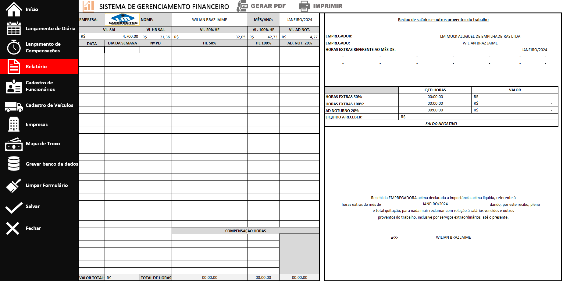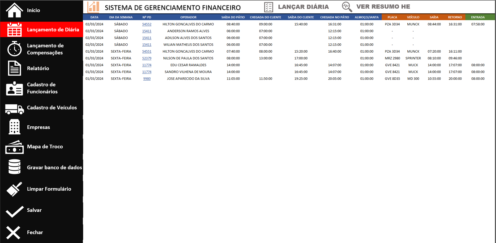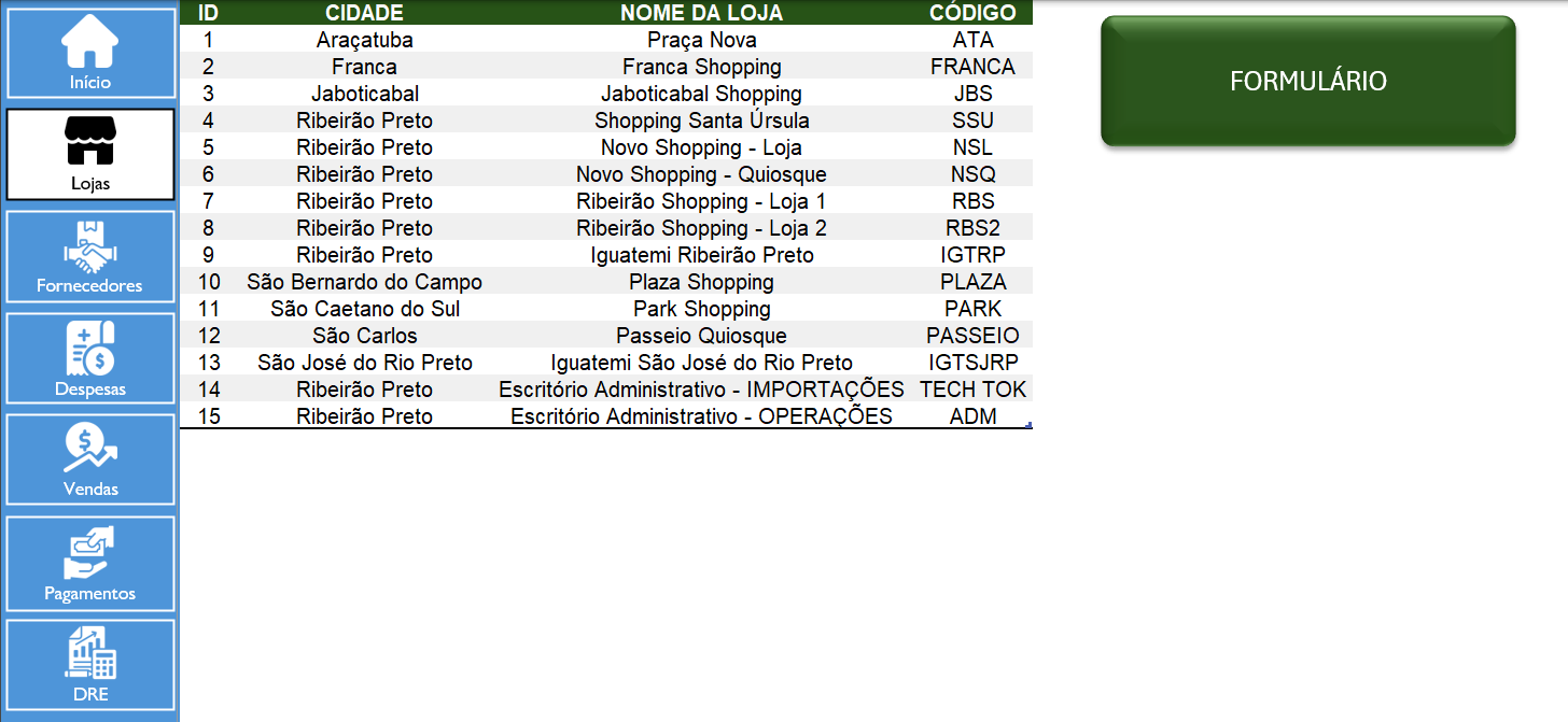 A finalidade neste projeto foi desenvolver uma planilha tipo "sistema", com formulários de entrada de dados, implementação de menus laterais para facilitar a navegação e várias automatizações por meio de códigos VBA.