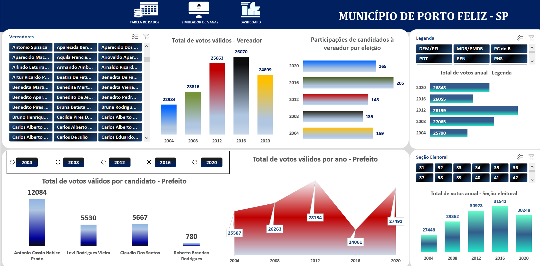 Códigos VBA para cálculos de cadeiras políticas, menus customizados e dashboard